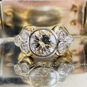 We put this huge diamond to good use by crafting a stunning chunky ring with a trio of smaller diamonds either side to the central stone, giving this ring enough sparkle to be seen from space.