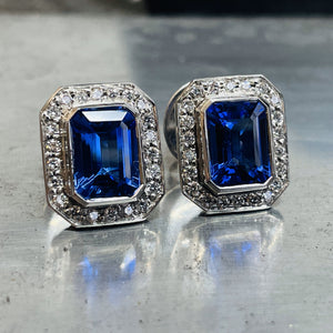 When our customer saw our art deco earrings in the our boutique windows they knew they had to have a pair made with their own chosen gemstone. Using two beautiful tanzanite’s we created the design like-for-like so that our customer had a pair unique to her style. With our own art deco collection featuring more common semi-precious gemstones, these earrings are certainly a rare piece.