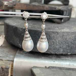 Designed and handmade in our Windsor workshop, these earrings are true showstoppers. With large pearls dangling, diamond encrusted pearl caps and two generously sized diamonds that sit on the lobe, these earrings are one of a kind and made to be treasured and loved for generations.